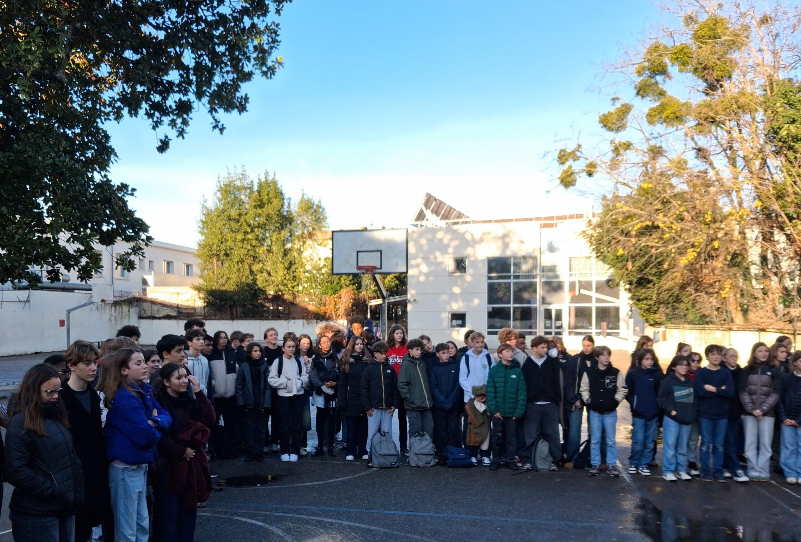 Ce 9 décembre, à l’occasion des 120 ans de la promulgation de la loi de 1905, dite de séparation des Églises et de l’État, des élèves de 3B, la « classe défense », ont lu devant leurs camarades des extraits de textes célébrant la laïcité à côte de l’arbre éponyme. C’est ainsi que l’ensemble des élèves ayant pris un engagement cette année, notamment les délégués de classe, ont pu entendre des paroles de Victor Hugo, Léon Gambetta et Jean Jaurès ainsi que des citations des 4 derniers présidents de la République (Jacques Chirac, Nicolas Sarkozy, François Hollande et Emmanuel Macron) sans oublier des mots de Robert Badinter pour clore ce temps solennel. Merci à M. Bélis, le professeur principal des 3B, et à M. Brochon et Mme Gouineau, principal et principale adjointe de l’établissement, pour l’organisation de cette cérémonie.