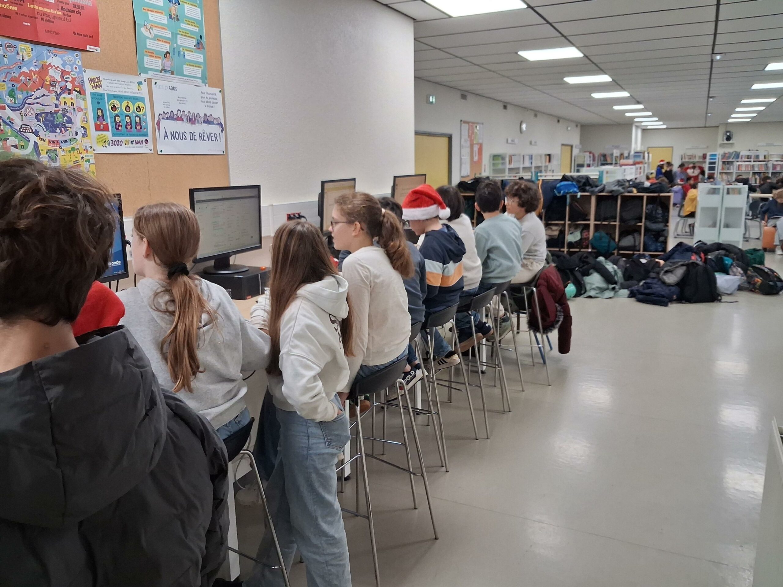 Les élèves du collège apprécient les moments passés au CDI. Ce dernier est souvent trop petit pour répondre aux nombreuses demandes. Voici un petit reportage photos qui démontre que le lieu est prisé aussi bien pour y lire, travailler, effectuer ses recherches, voire même offrir des cadeaux de Noël (des livres bien-sûr !) à ses camarades ou tout simplement jouer aux échecs. Merci à Madame Magniez pour son travail, l’assistante de Madame Cousseau venait aider le documentaliste les vendredis. Nous lui souhaitons une très bonne retraite ! Et Bienvenue à Madame Château qui lui succède.