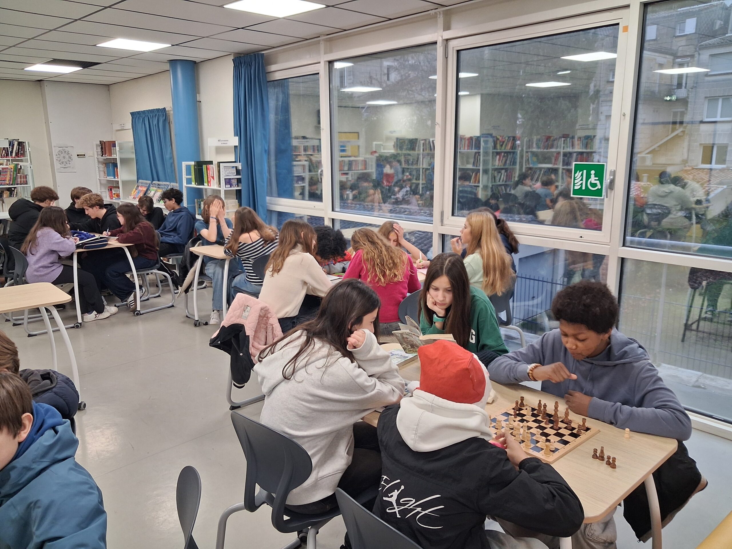 Les élèves du collège apprécient les moments passés au CDI. Ce dernier est souvent trop petit pour répondre aux nombreuses demandes. Voici un petit reportage photos qui démontre que le lieu est prisé aussi bien pour y lire, travailler, effectuer ses recherches, voire même offrir des cadeaux de Noël (des livres bien-sûr !) à ses camarades ou tout simplement jouer aux échecs. Merci à Madame Magniez pour son travail, l’assistante de Madame Cousseau venait aider le documentaliste les vendredis. Nous lui souhaitons une très bonne retraite ! Et Bienvenue à Madame Chateau Bertou qui lui succède.