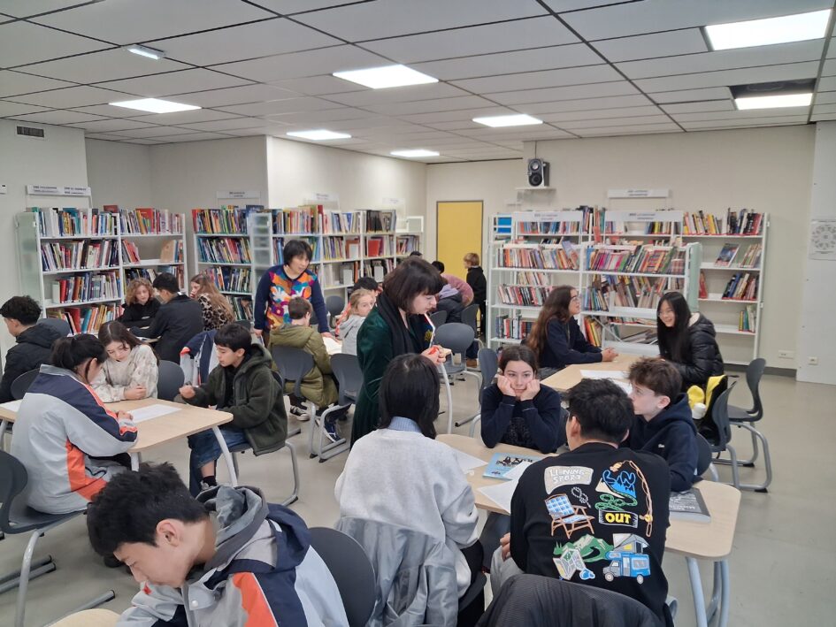 Les élèves chinois présents au collège ont participé à une séance de découverte de la poésie française, le vendredi 6 février, au CDI. Jumelés à la classe de 5F, chacune et chacun d’entre eux ont étudié une poésie choisie par Mme Dulout, professeure de lettres, pour ensuite la déclamer à « 3 voix » devant le groupe. La poésie exprime des émotions et des idées à travers le rythme et les mots. Des poètes comme Victor Hugo, Paul Verlaine ou Jacques Prévert ont utilisé la langue pour évoquer des sentiments et des sensations. Découvrir ces auteurs, c’est appréhender la culture et la sensibilité françaises.