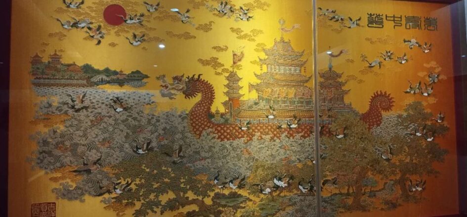 « Avec ma correspondante nous sommes allés au musée Yunjin de 南京, où nous avons vu la création et le tissage de grandes toiles, de petits objets et d’habits tissés à partir de soie, de fils d’or, et même de plumes de paon. »