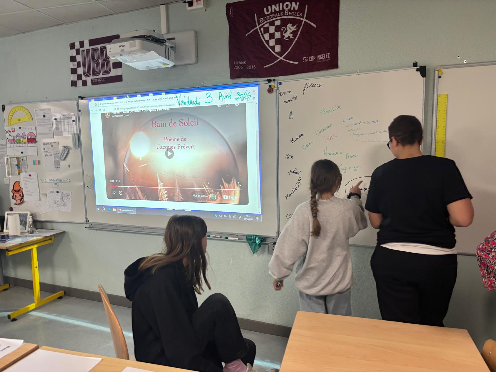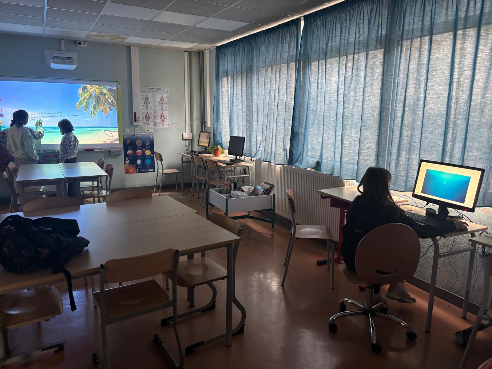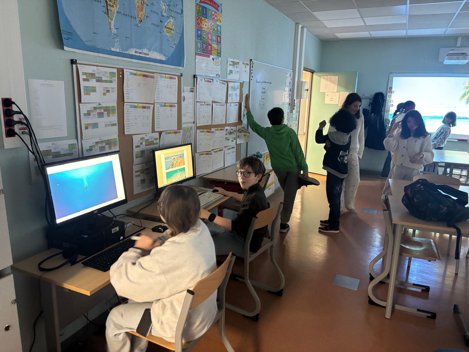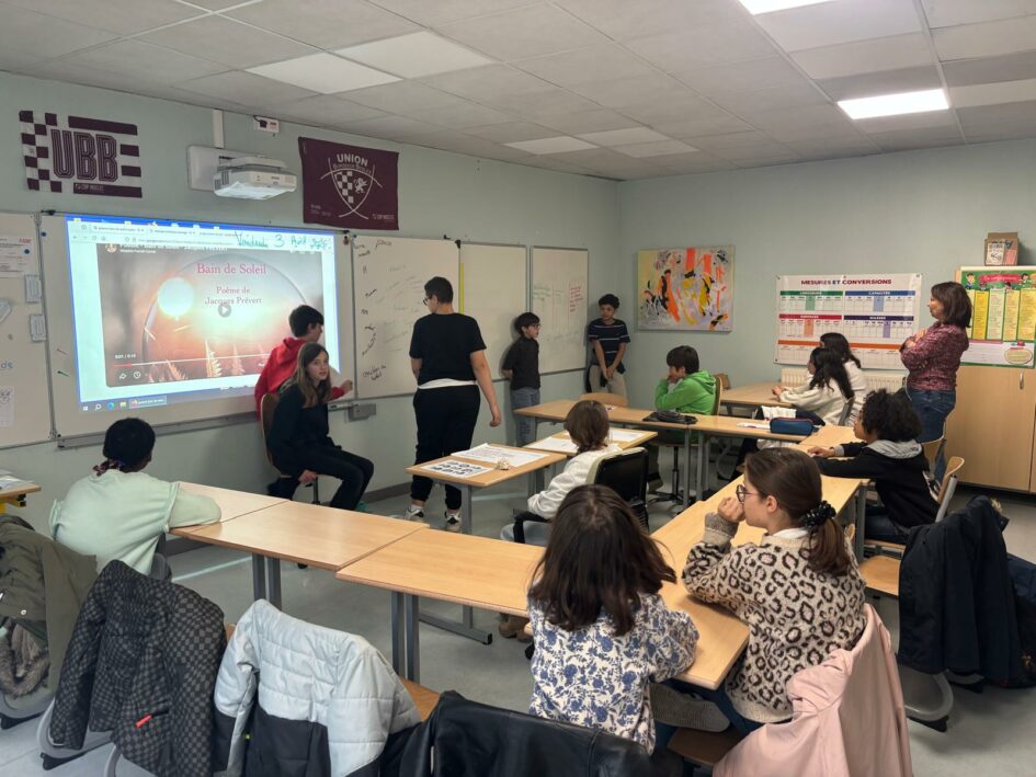 Madame Laravoire, professeure de français, et Monsieur Gaubert, l’enseignant responsable de l’ULIS, mènent actuellement un projet qui vise à faire travailler en groupes des élèves à besoins éducatifs particuliers avec d’autres élèves de 6ème à travers la poésie sur le thème de l’océan. 14 élèves se sont portés volontaires pour prendre part à 6 séances ayant été programmées du 3 avril au 3 juin.