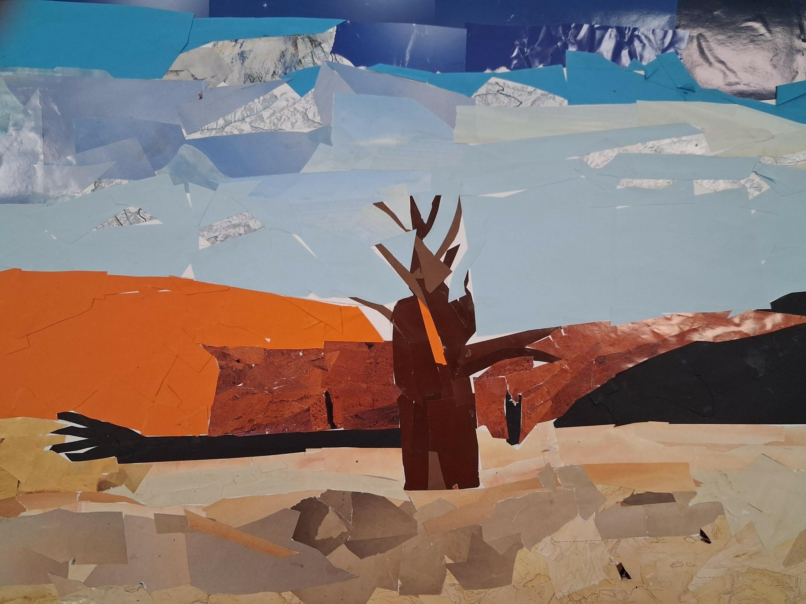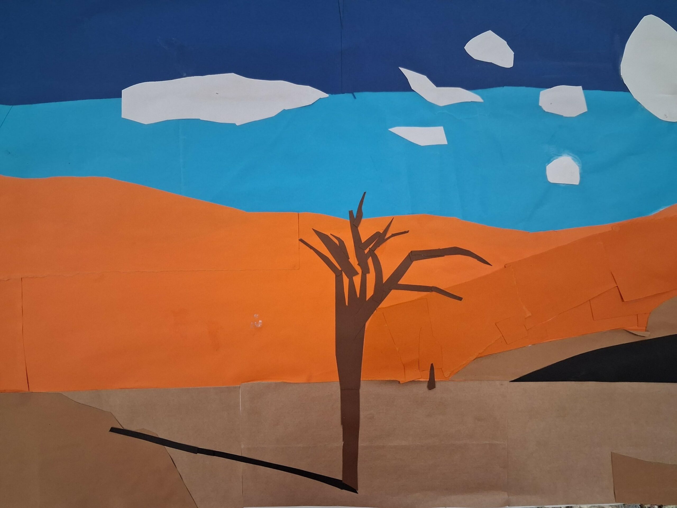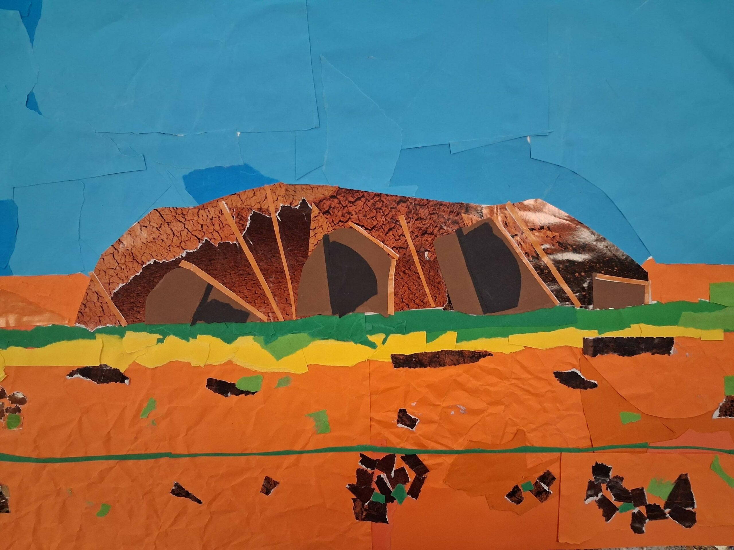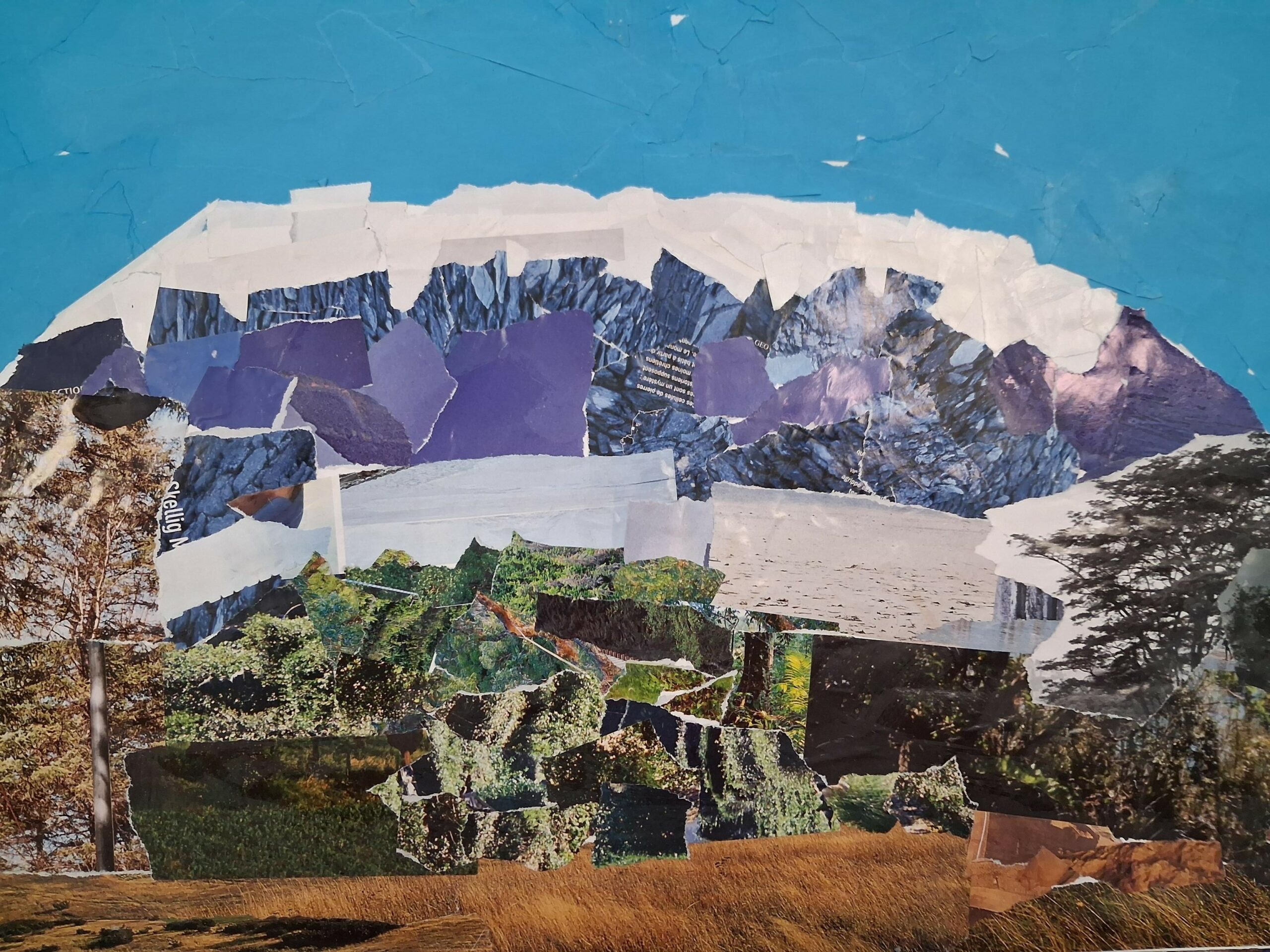 Madame Diénot, professeure d’arts plastiques, a proposé aux élèves de 4A, 4D et 4G de reproduire des paysages classés au patrimoine mondial de l’UNESCO sous la forme de collages. C’est ainsi que nous pouvons retrouver dans leurs travaux le Kilimangaro en Tanzanie, Ayer Rock en Australie, le Mont Fuji au Japon, Vinicunca au Pérou, les météores en Grèce ou le canyon de Studlagil en Islande. Autant de couleurs qui témoignent de la richesse et de la diversité des paysages de notre planète. À travers le découpage, l’assemblage et le jeu des matières, les élèves ont su réinterpréter ces sites emblématiques avec créativité et sensibilité.